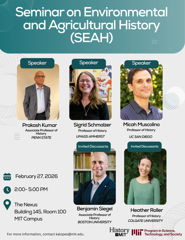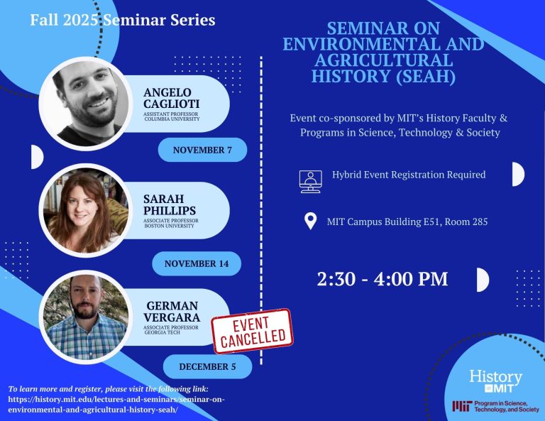 This seminar series is sponsored by MIT's History Faculty and Program in Science, Technology, and Society. For more information, contact kalopes@mit.edu.